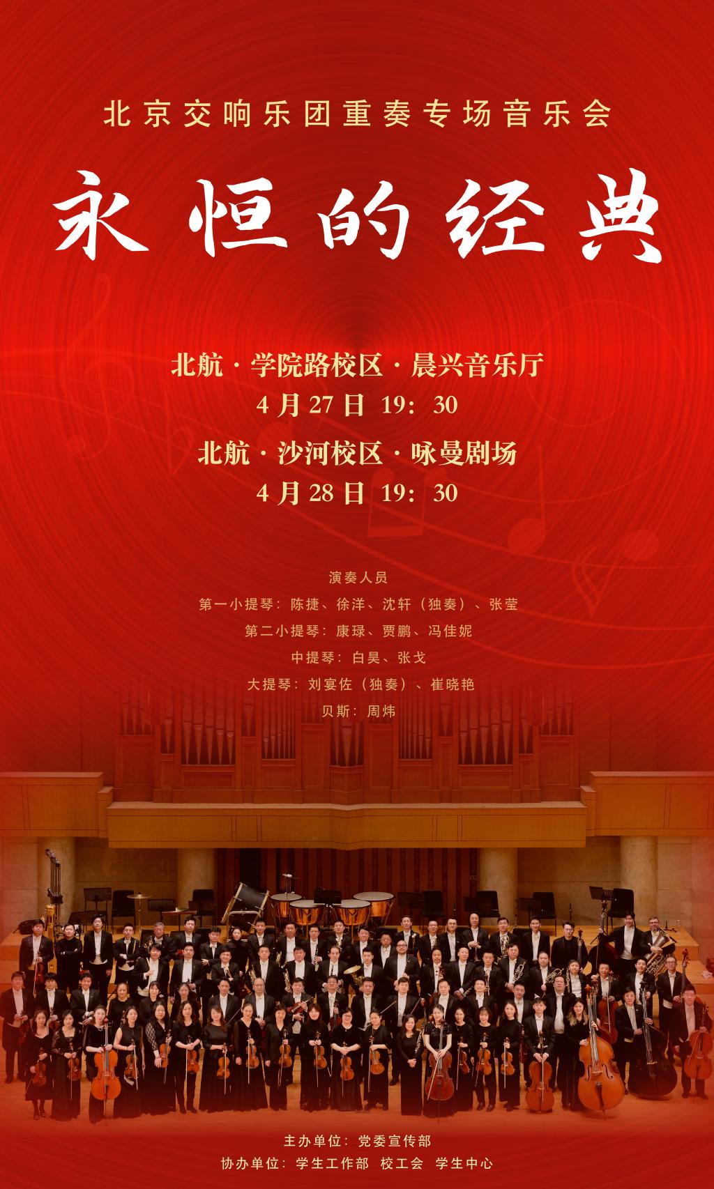 ¡°ÓÀºãµÄ¾µä¡±¡ª¡ª±±¾©½»ÏìÀÖÍÅÖØ×àר³¡ÒôÀֻὫÓÚÖÜËÄ£¨4ÔÂ27ÈÕ£©19:30£¬ÖÜÎ壨4ÔÂ28ÈÕ£©19:30ÏȺóÔÚÑ§ÔºÂ·Ð£Çø³¿ÐËÒôÀÖÌü¡¢É³ºÓÐ£ÇøÓ½Âü¾ç³¡ÉÏÑÝ¡£