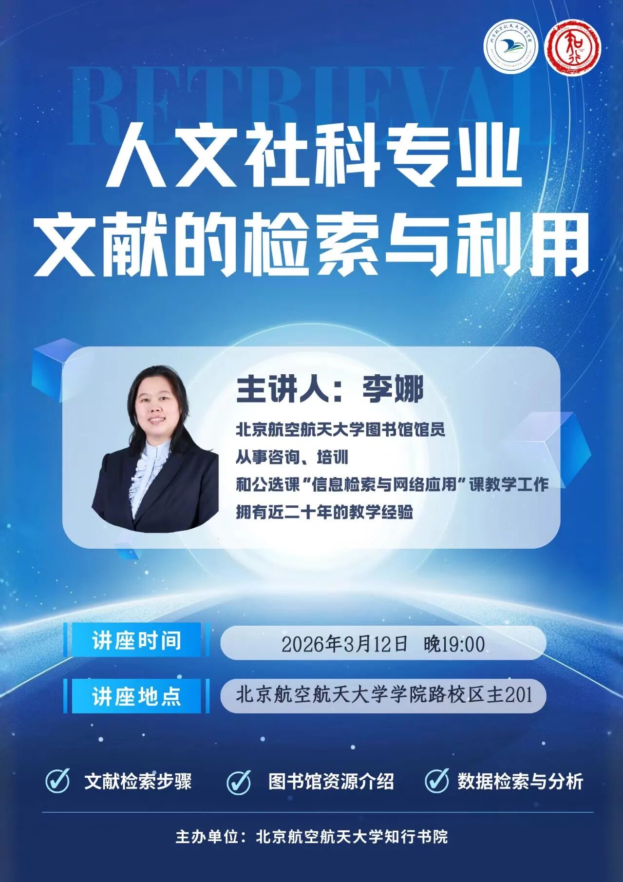 ±¾´Î½²×ù¾Û½¹ÎÄÏ×¼ìË÷µÄÊÊÓÃÊÖÒÕ£¬Ö÷Òª½â˵´ÓÆÊÎöÐèÇóµ½»ñȡȫÎĵÄÍêÕû¼ìË÷°ì·¨£¬×ÊÖú¸÷ÈËÀíÇå¼ìË÷˼Ð÷¡£Í¬Ê±£¬½«ÏµÍ³ÏÈÈÝͼÊé¹ÝµÄÖÖÖÖ×ÊÔ´ÓëЧÀÍ£¬ÖصãÒÔÖйúÖªÍøµÈÖÐÎÄÊý¾Ý¿âΪÀý£¬ÏÖ³¡ÑÝʾÏêϸµÄ¼ìË÷ÒªÁìÓëÊý¾ÝÆÊÎö¹¦Ð§£¬ÖúÁ¦¸÷È˸ßЧʹÓÃѧÊõ×ÊÔ´¡£